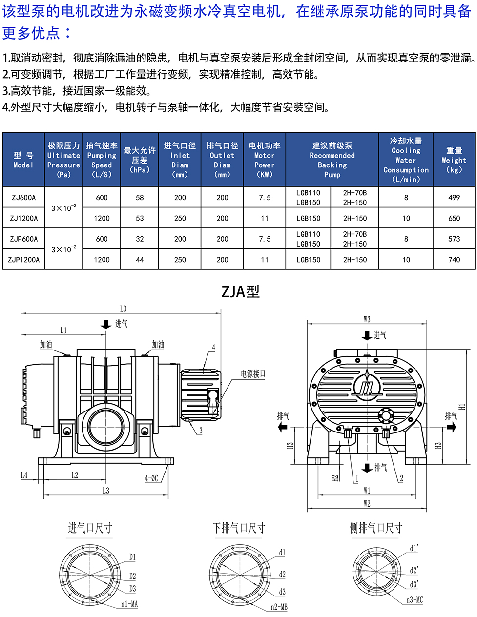ZJA.ZJPA永磁真空电机罗茨真空泵 / ZJ600A,ZJ1200A,ZJP600A,ZJP1200A